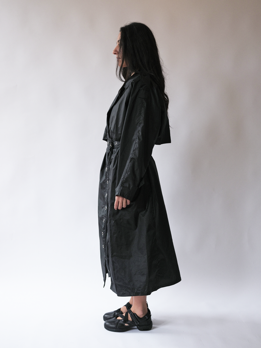 Black Eyelet Belt Trench