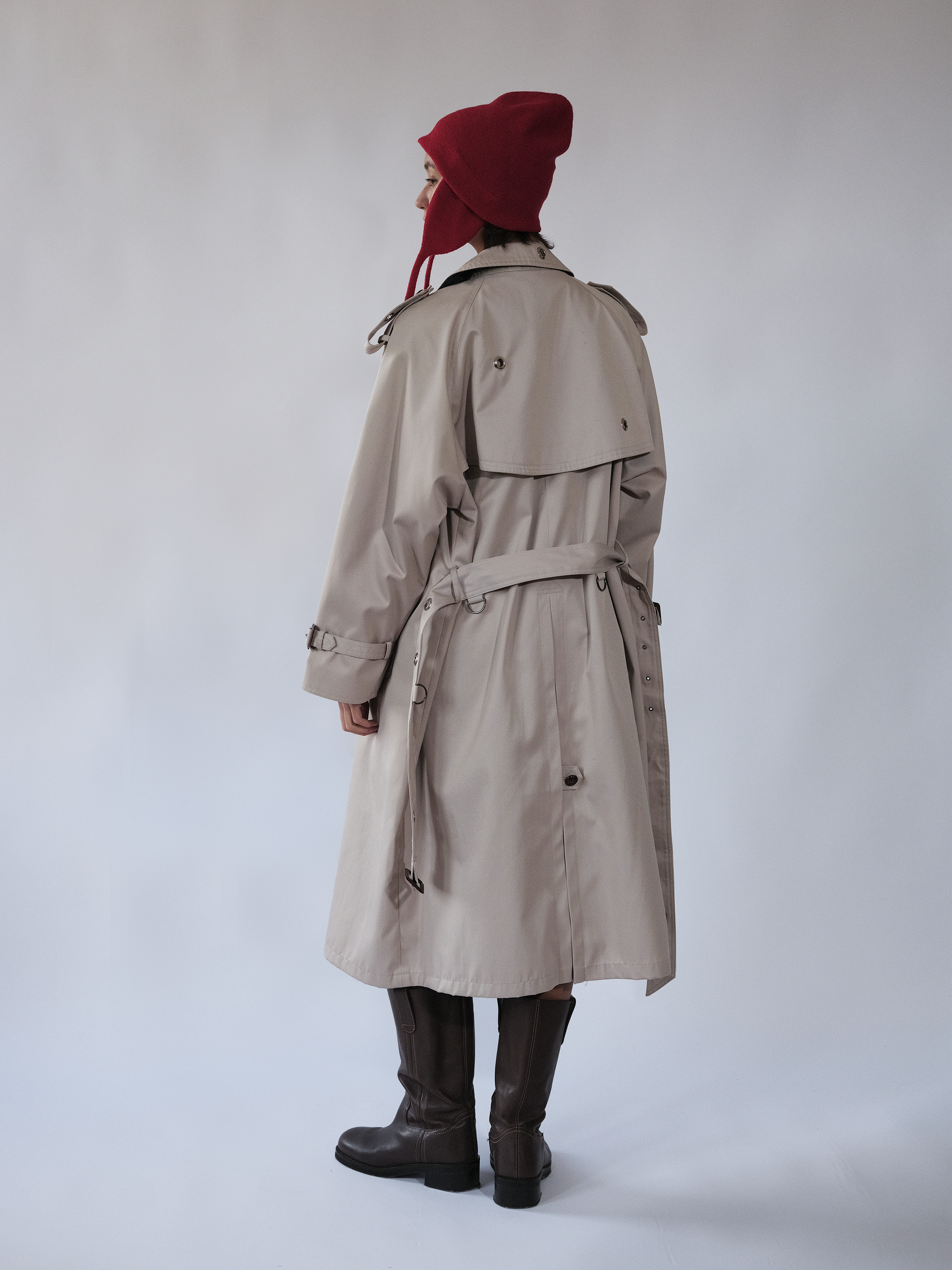 Beige Eyelet belt trench by upcycling London duo Celosia Re.