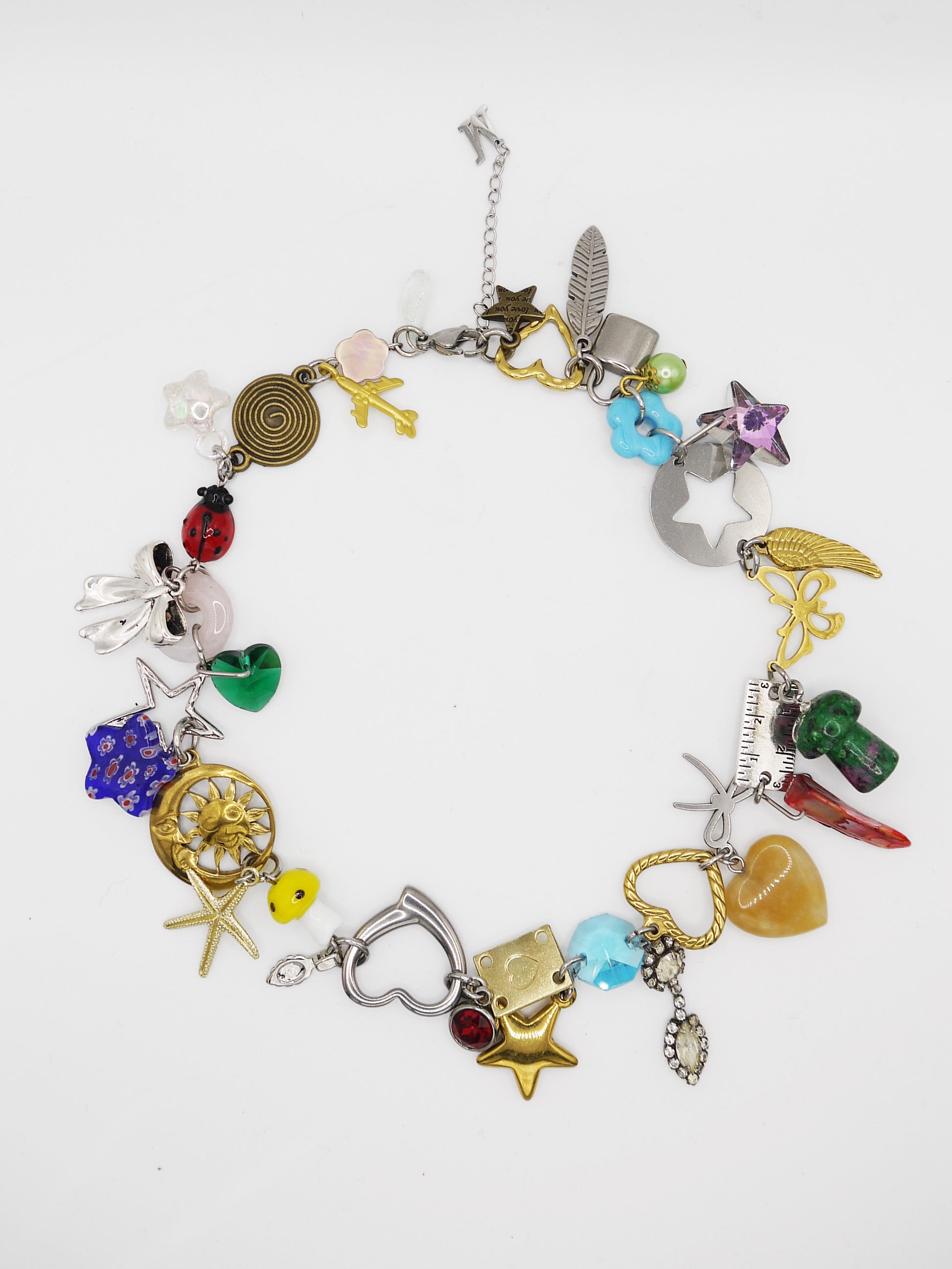 Chain is stainless steel / charms are various materials