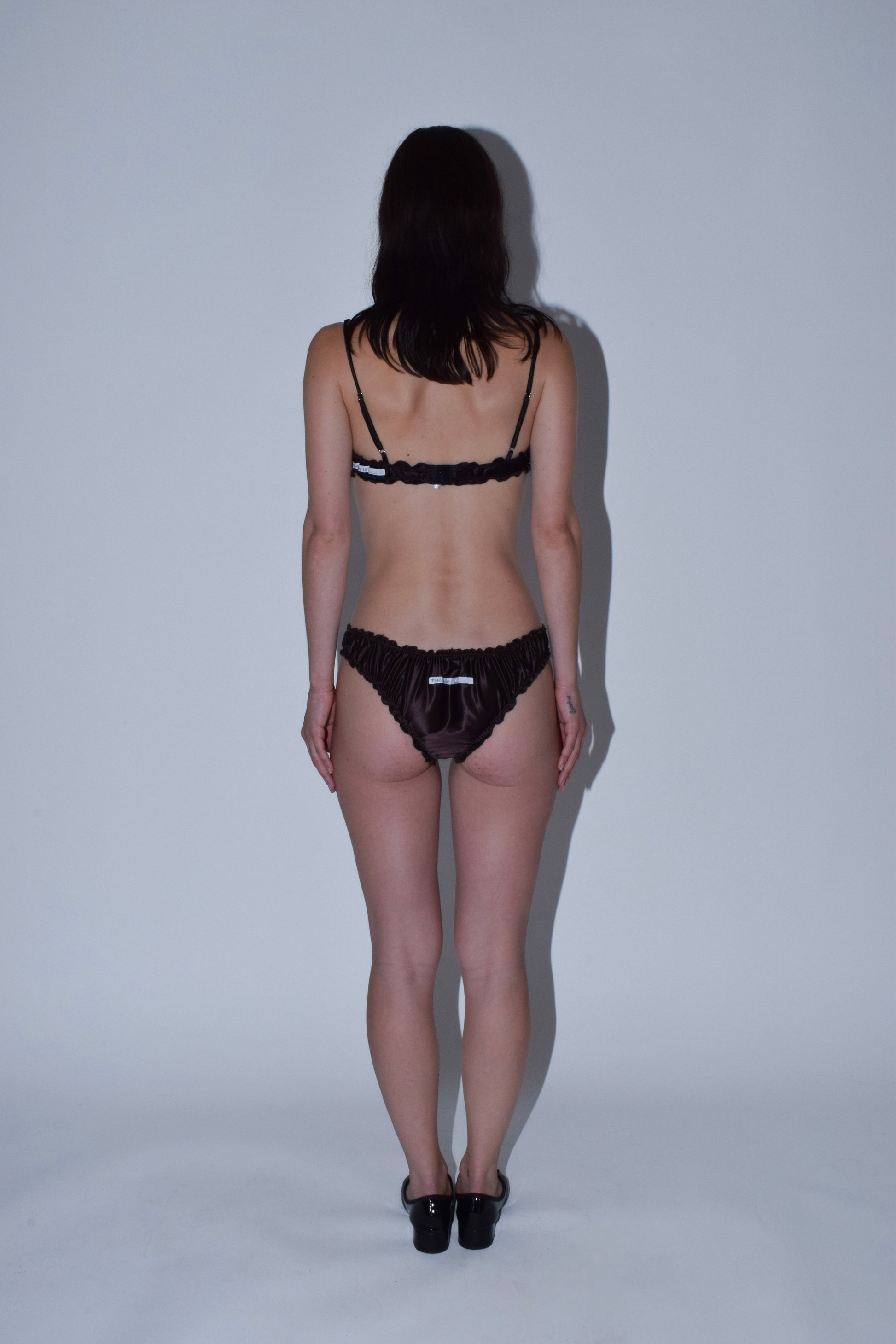 Chocolate Brown Silk Ruffle Bralette