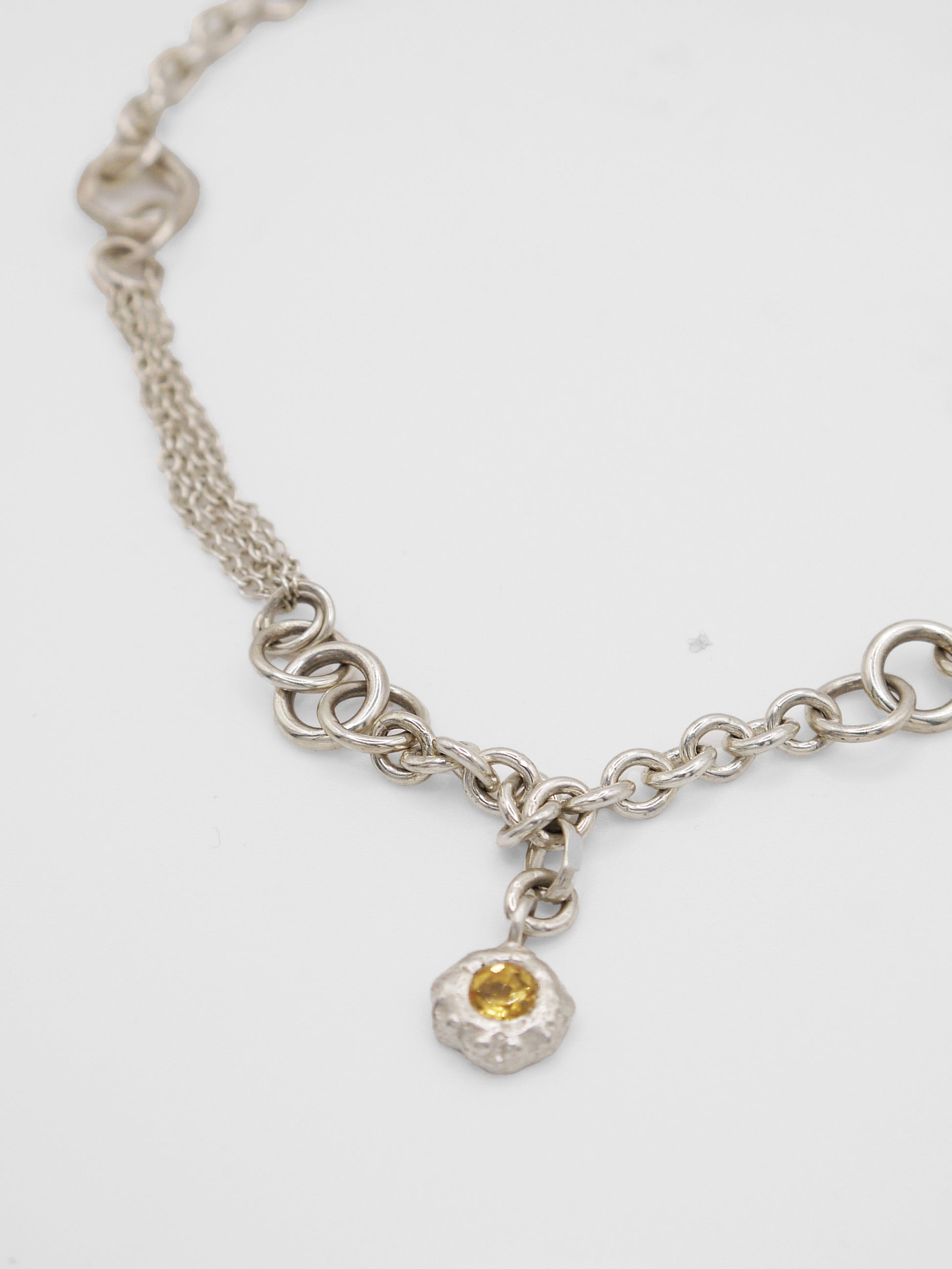 Recycled sterling silver with yellow citrine, handmade chain