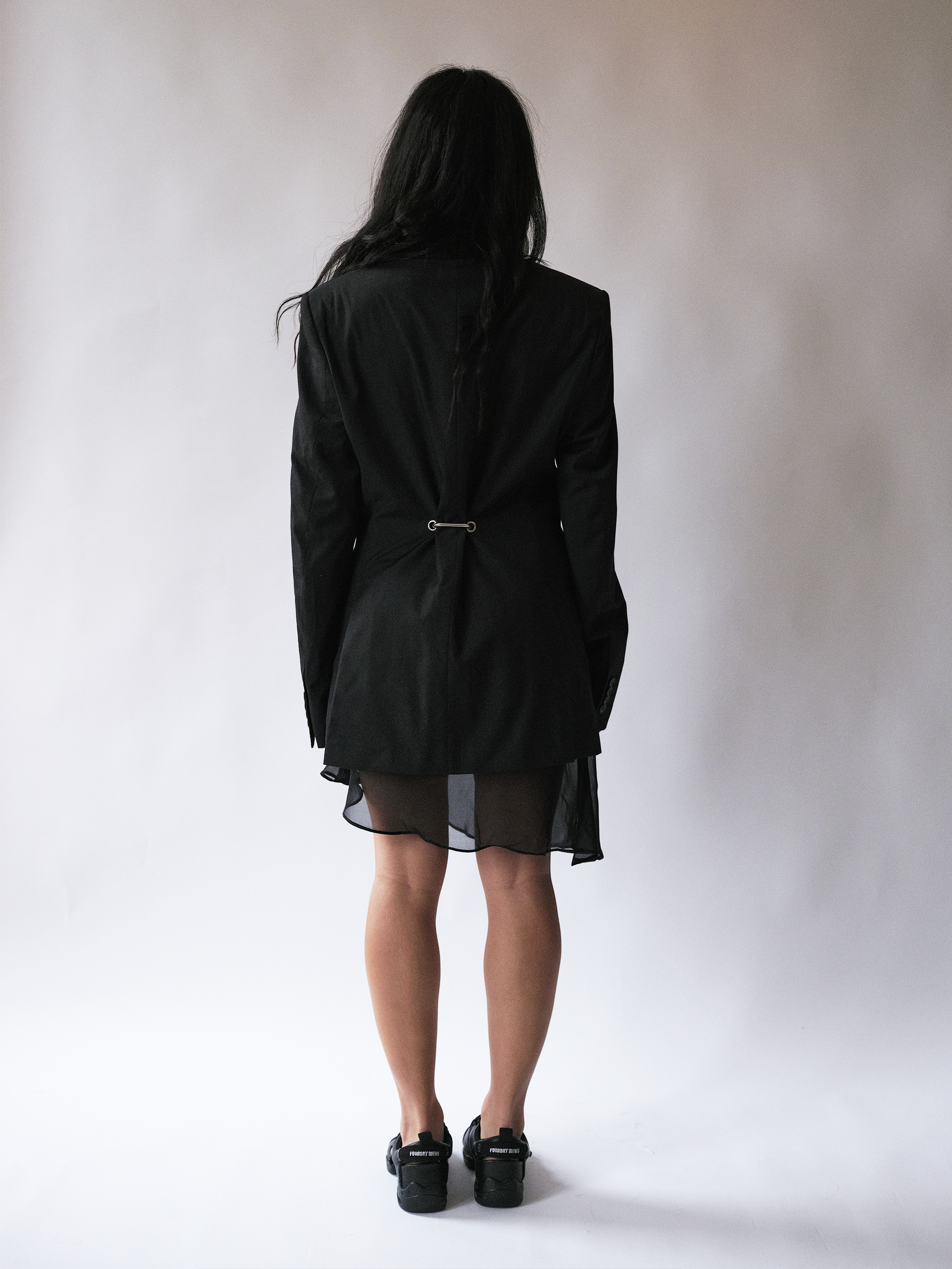Up-cycled blazer by Celosia Re. A one off piece featuring hardware details on the back.