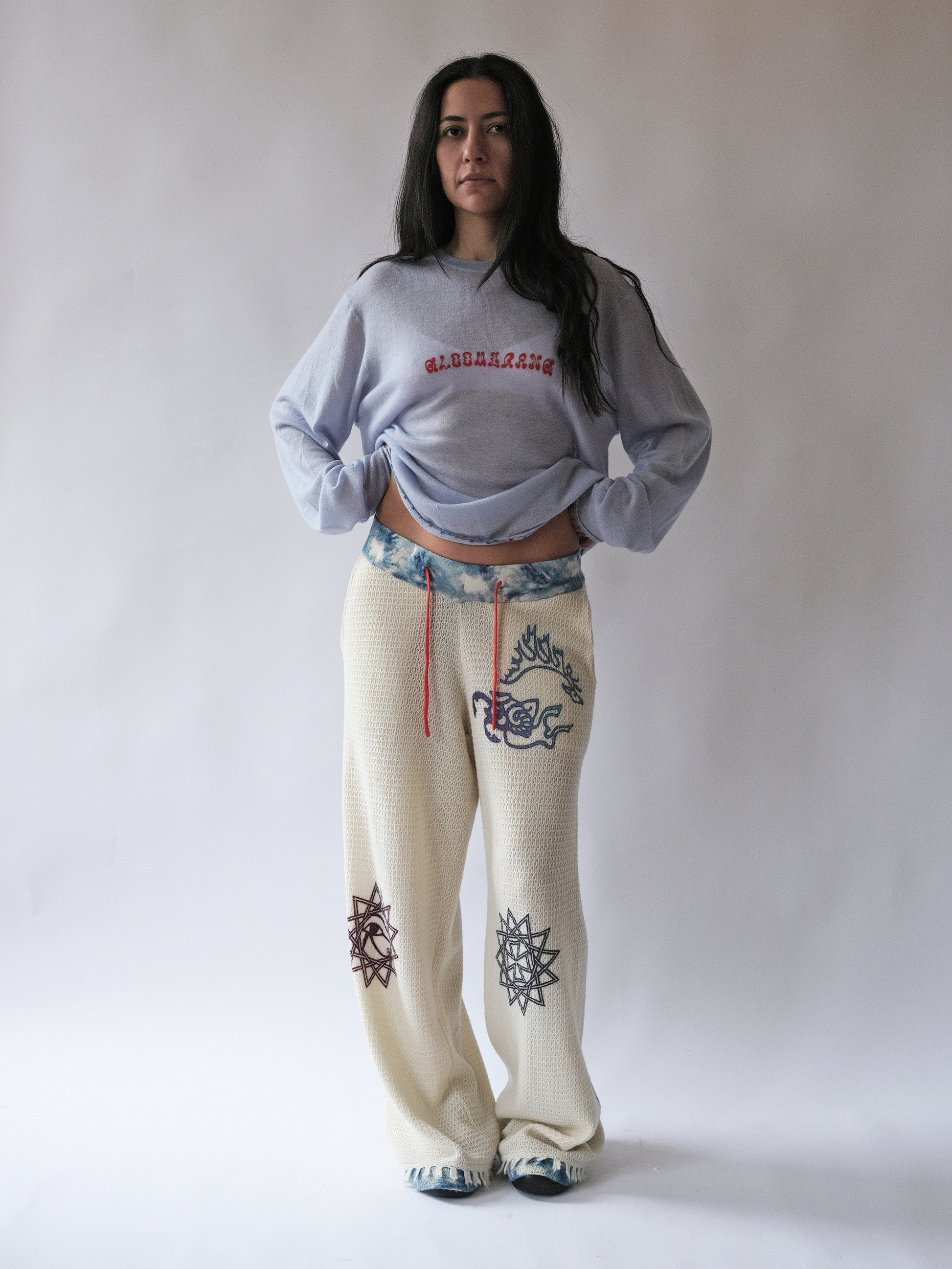 Our signature sweater. The Genesis Top is made from our lightweight cashmere blend with a close, second-skin fit. We recommend that women size down for less oversized look. Models are wearing a size XS. All details and designs are hand drawn by Adrian Schachter in London.