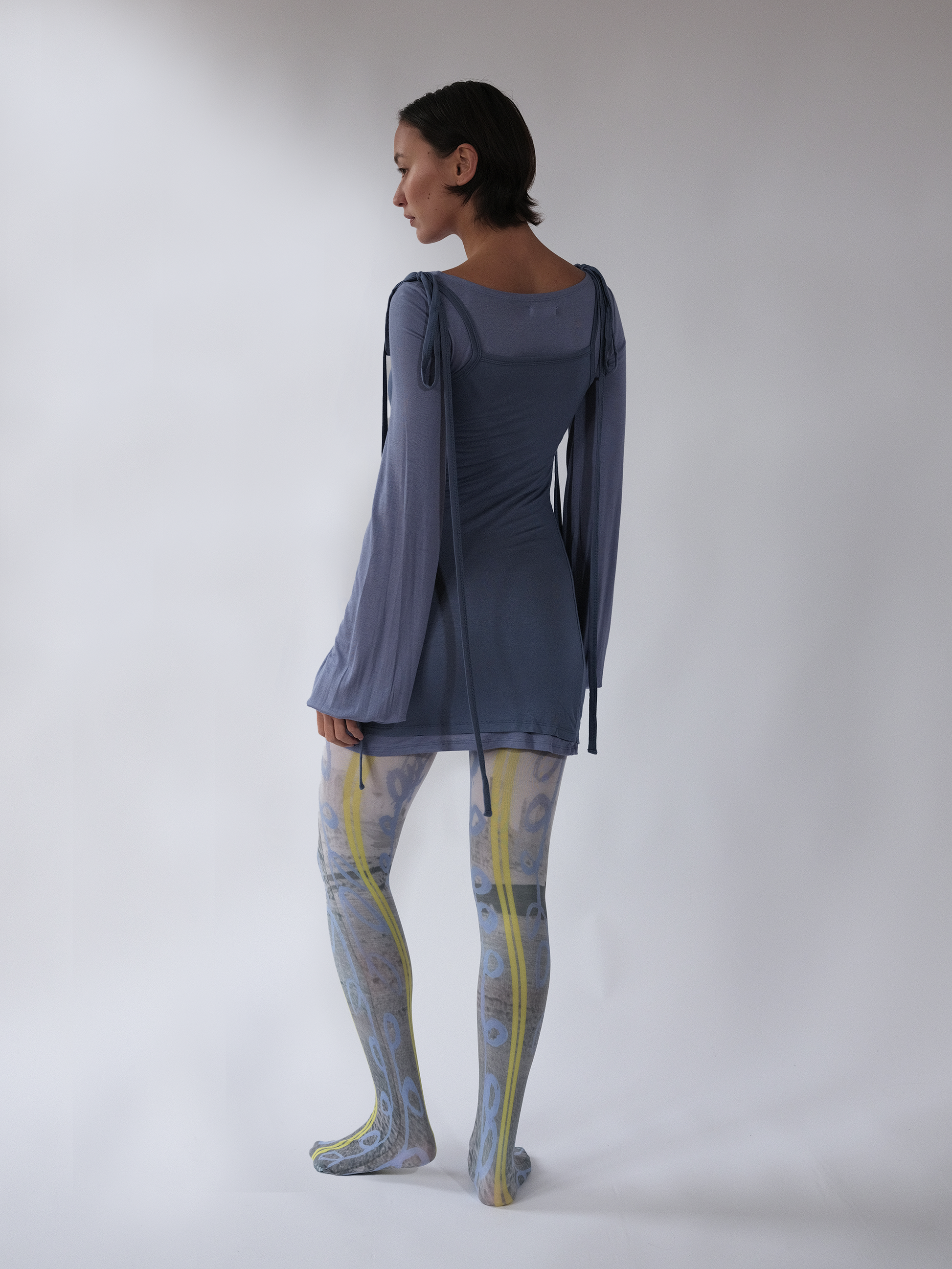 Layered mini dress made with the softest cotton jersey by Verconiik. Featuring balloon sleeves and adjustable bows.