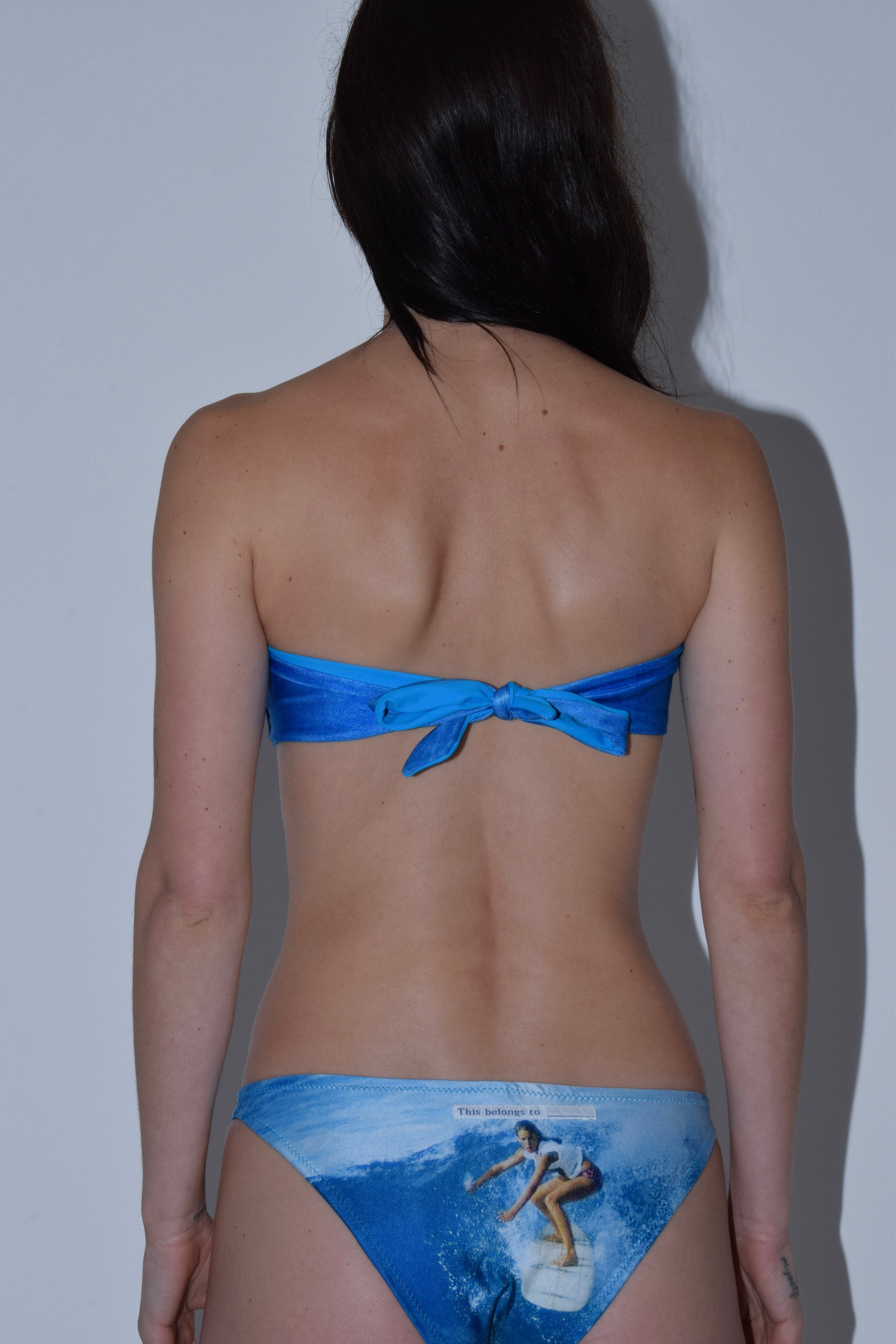 This bandeau bikini top could be the coolest item in your wardrobe this summer. Fits as tight as you like by tying at the back while structurally supporting itself on the sides. Surf your way into summer with this bright blue Malibu Collection, match it with our Malibu bikini bottoms for the full look.