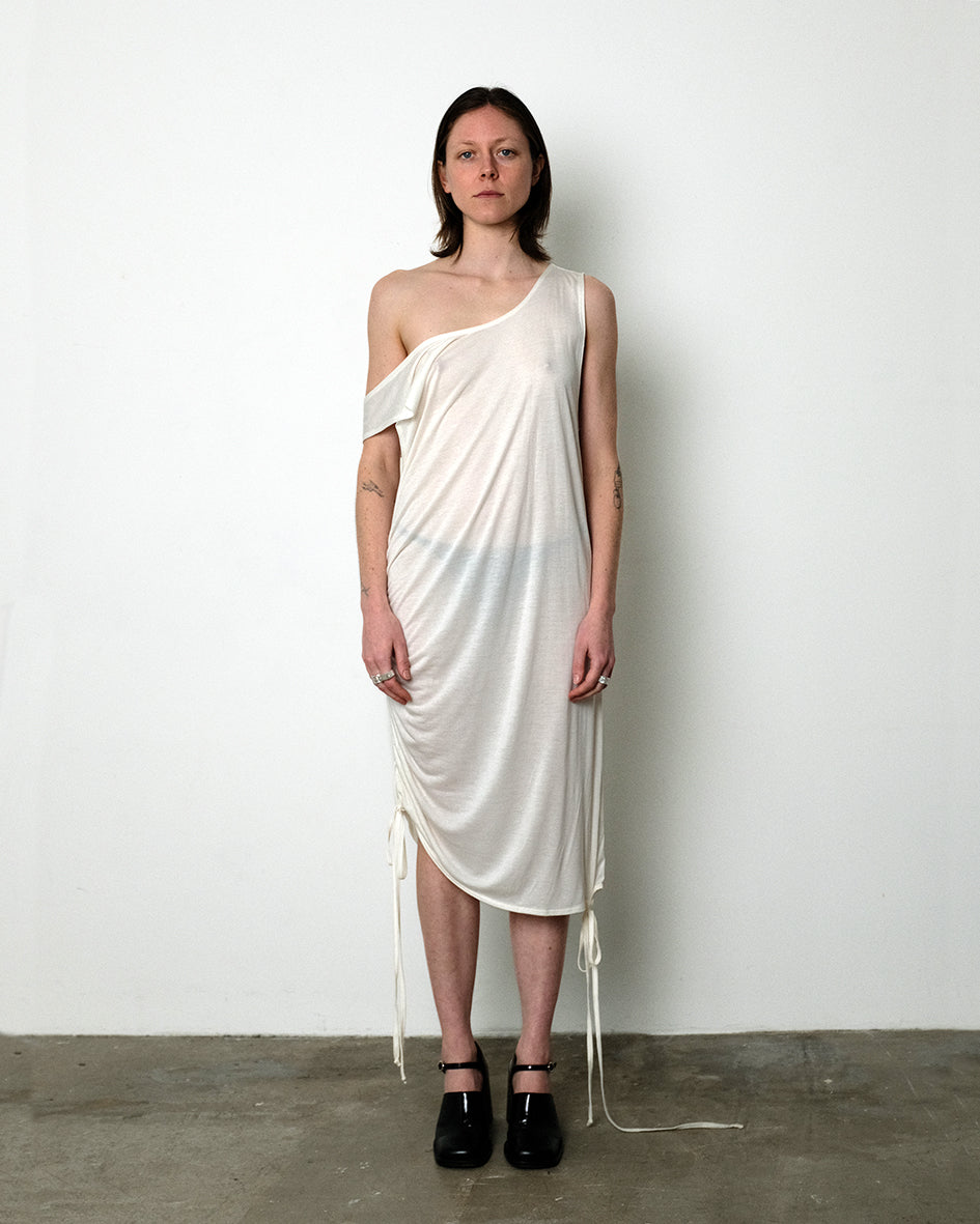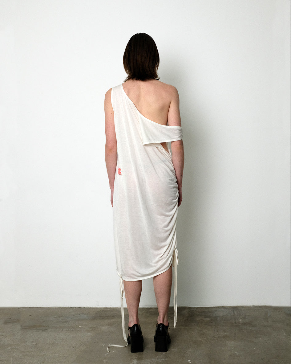 An addictive staple piece. Our multiway tank dress can be worn as dress, top and in many playful combinations. This superfine merino wool rib version is extra soft and stretchy. Mimicking the "wife beater" rib tank in fit and fabric but with the luxury of Australian milled superfine wool and the twist of the multiway silouhuete. Breathable in Summer and the warmest insulative base in winter.